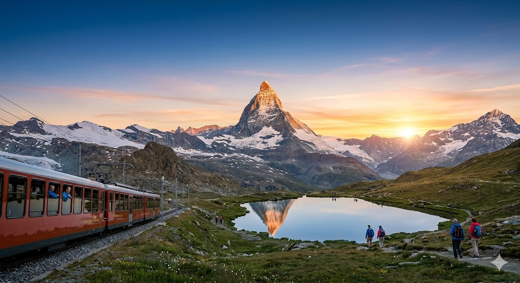 Wisatawan dapat menaiki Gornergrat Railway, salah satu kereta gunung tertinggi di Eropa. Kereta ini membawa pengunjung hingga ketinggian lebih dari 3.000 meter dengan pemandangan Alpen yang menakjubkan sepanjang perjalanan.