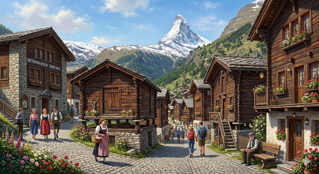 Meskipun telah berkembang menjadi destinasi wisata internasional, Zermatt tetap mempertahankan pesona tradisional desa Alpen. Banyak bangunan di desa ini masih menggunakan desain chalet kayu klasik yang memberikan suasana hangat dan autentik.