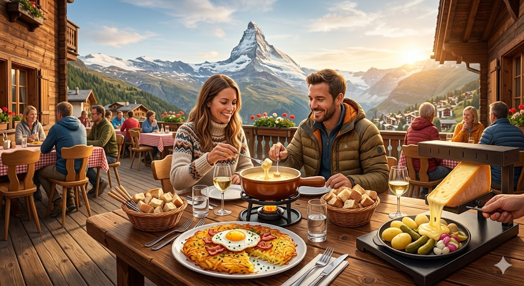 Perjalanan ke Swiss tidak akan lengkap tanpa mencicipi kuliner khasnya. Zermatt memiliki banyak restoran yang menawarkan hidangan tradisional Swiss dengan pemandangan pegunungan yang spektakuler.