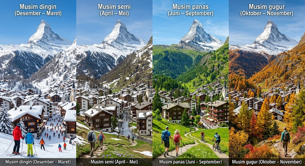 Zermatt dapat dikunjungi sepanjang tahun, namun setiap musim menawarkan pengalaman yang berbeda.